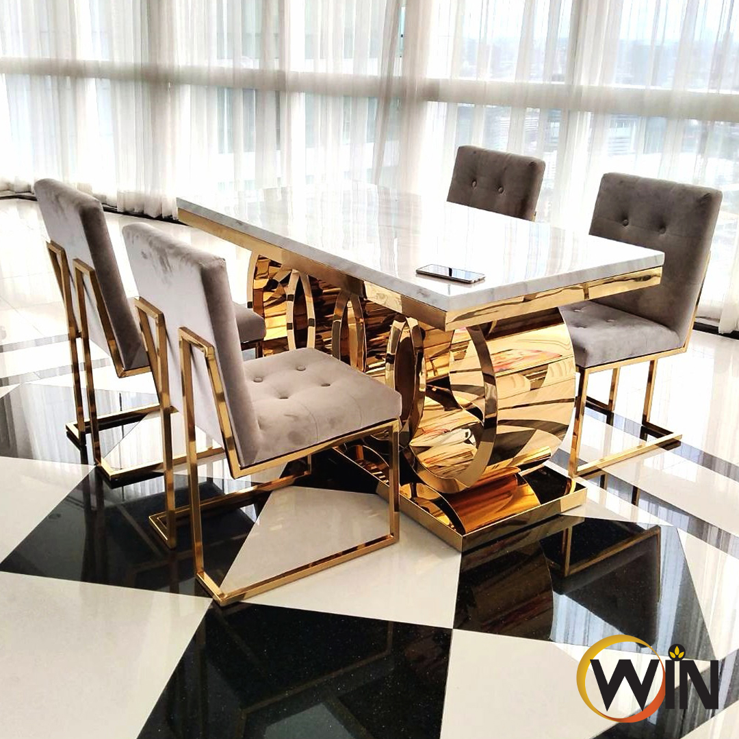 แคตตาล็อคสินค้า : Dinning Table โต๊ะทานข้าว สแตนเลส เหล็ก โต๊ะทานข้าวสั่งผลิตตามแบบ โต๊ะทานข้าวนำเข้า เลือกสีสแตนเลสได้ เช่น สีทอง สีเงิน สีโรสโกลด์ สีดำ ซึ่งทุกสีสามารถเลือก Finishing ได้ 2 แบบ คือ แบบเงา (Mirror) และแบบด้าน (Hairline) สำหรับท็อปมีให้เลือกทั้งหินอ่อนแท้ และหินสังเคราะห์คุณภาพสูง มีให้เลือกมากกว่า 10 ลาย สามารถป้องกันการซึมซับของเหลว อีกทั้งยังทำความสะอาดได้ง่ายอีกด้วย
